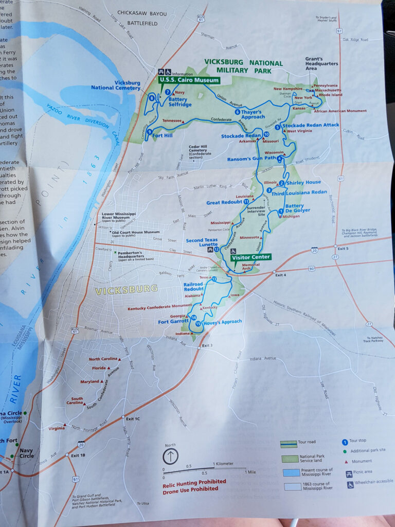 In Vicksburg is één van de belangrijkste veldslagen van de Amerikaanse burgeroorlog gestreden. Abraham Lincoln noemde Vicksburg zelfs “The key to victory”. Daarmee is dit Memorial Park zeer gepast op deze plaats. In dit gigantische National Park hebben alle staten die hier hebben gevochten een gebied gekregen waar ze hun eigen memorials mochten bouwen. Het ene memorial is daardoor nog groter dan het andere, hoewel er ook veel kleinere monumenten zijn die een persoon of bataljon herdenken.